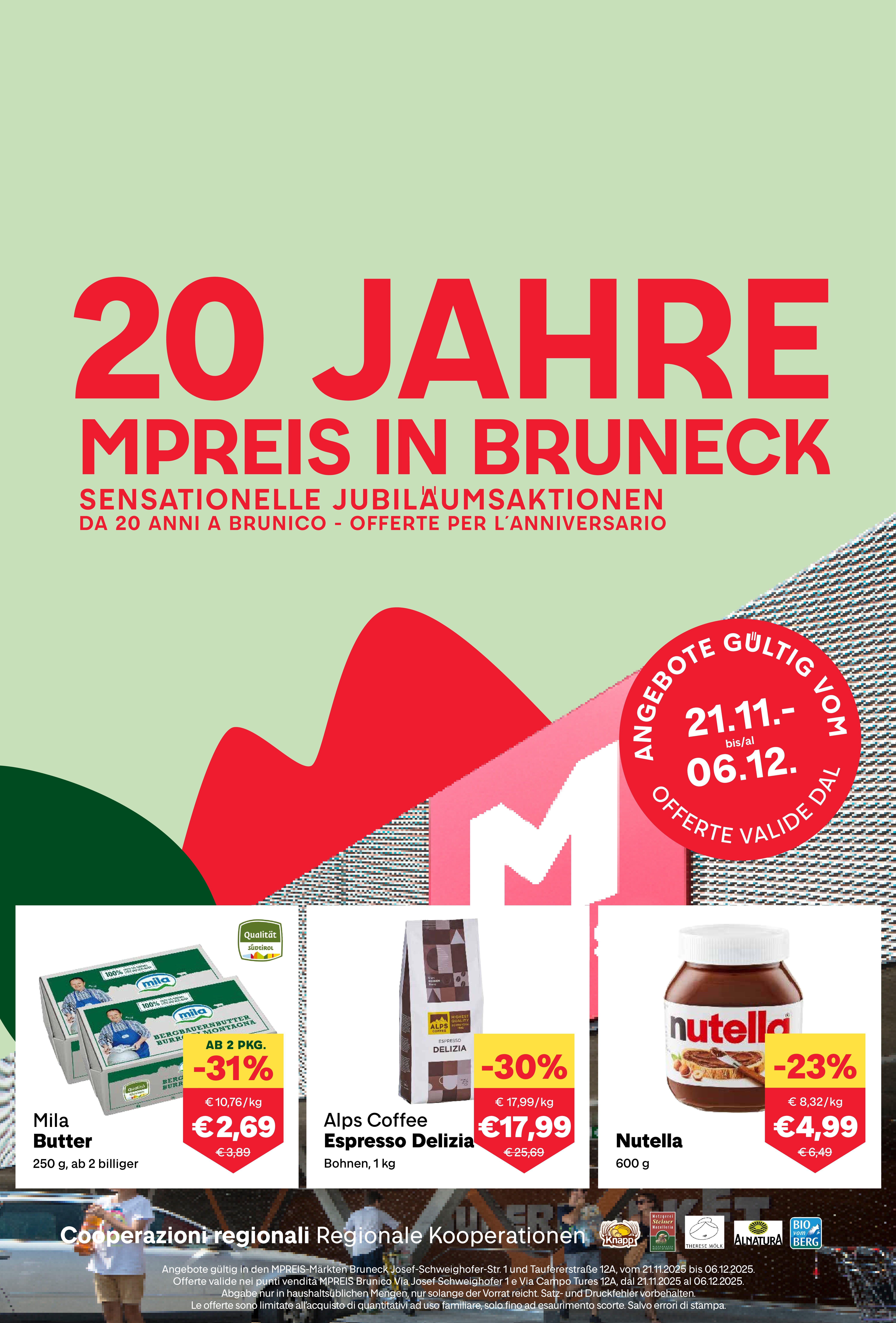 Angebote gültig in den MPREIS-Märkten Bruneck vom 21.11.2025 bis 06.12.2025.